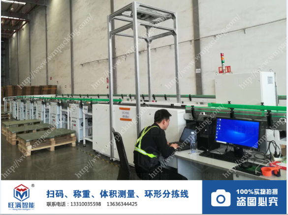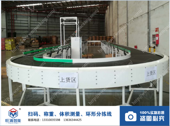旺滿牌環(huán)形分揀線-旺滿牌自動(dòng)掃碼、動(dòng)態(tài)稱重、體積測量、自動(dòng)分揀線-全自動(dòng)讀碼稱重量方環(huán)形分揀流水線