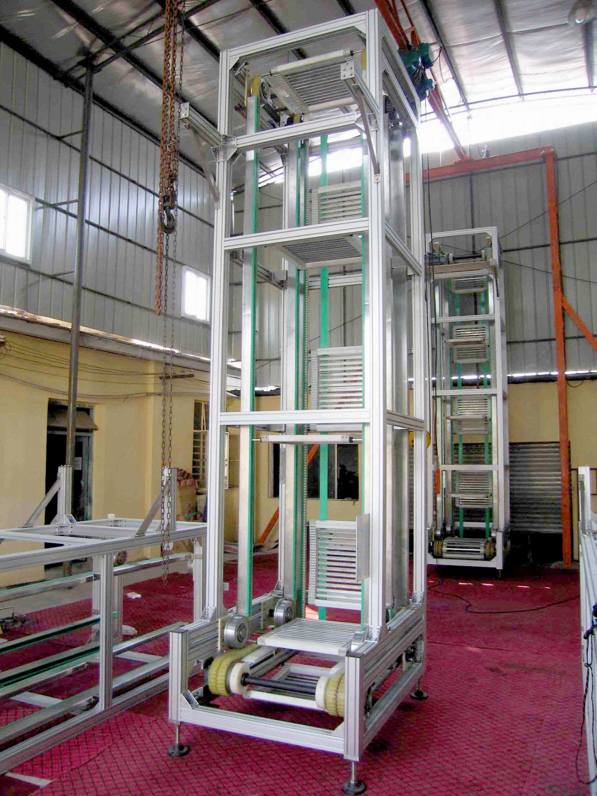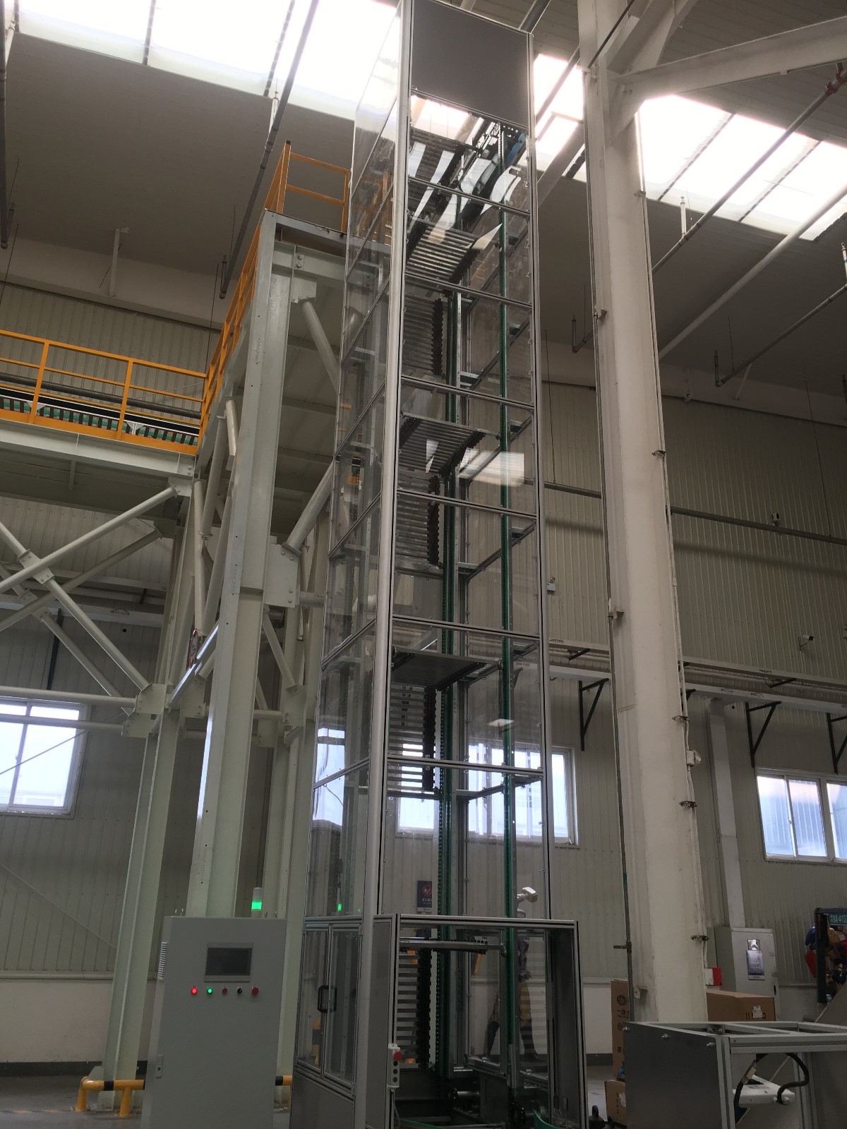 2. Widely used for vertical transportation of boxes, bags, pallets and other products. The output form can be Z type and C type. The structure made by high quality Carbon Steel. The bottom inputting equipment can be belt conveyor or roller conveyor.