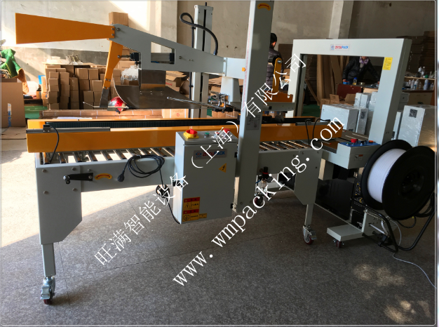 自動折蓋封箱捆扎生產(chǎn)線集自動折蓋、封箱及捆扎為一體,具有連續(xù)自動折蓋、上下封箱、多道捆扎包裝功能;實(shí)現(xiàn)封箱捆扎自動化、節(jié)省生產(chǎn)成本。具有自動停線、自動喚醒功能。可通過簡單方便的調(diào)整實(shí)現(xiàn)紙箱規(guī)格的變換。